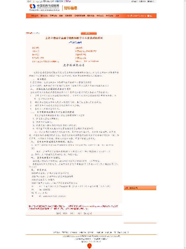 LXJR20160126上海立信会计金融学院教师教学中心家具采购项目招标公告